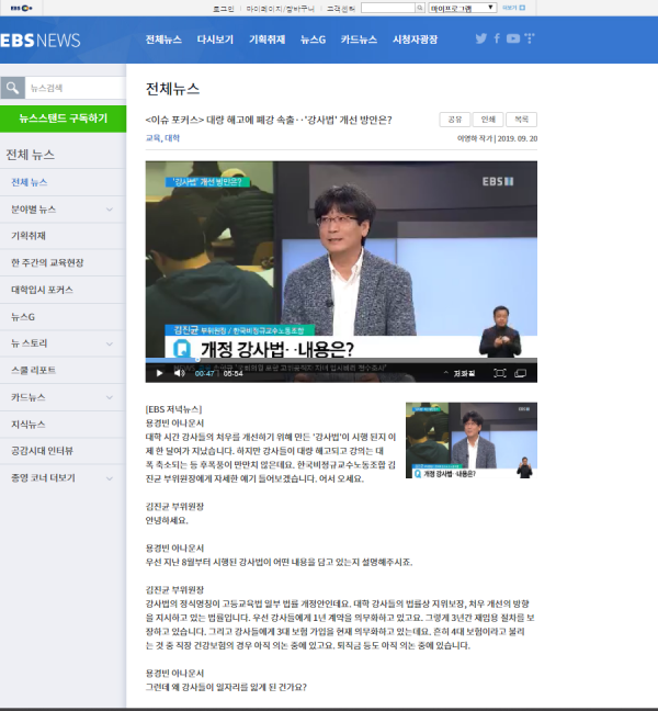 9월 20일에 방영된 분회장님 인터뷰입니다.